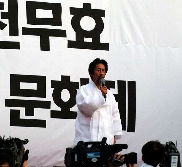 이어 저녁 7시~9시에는 1만여명이 참가한 ‘언론악법 원천무효 국민선언 촛불문화제’가 평온히 진행됐습니다. 이날 시민사회단체 및 대표자들도 ‘6대 국민선언’을 발표하며, MB, 한나라당 선거 심판 등 미디어법 원천무효 투쟁에 동참을 선언했습니다.