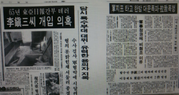 당시 신문들이 보도한 내용이다. 한 가지 덧붙이자면, 국회 차원의 진상조사단까지 꾸려져 이진삼과 그의 부하 두 명에 대한 조사가 시작되자, 군 당국이 이들 세 명을 베트남으로 빼돌려 조사를 방해했고 수사는 흐지부지됐다. 정보사 출신 요원들의 양심선언으로 1985년과 1986년 테러 사건에 대한 진상 규명 작업이 한 창일 때, 1965년 테러에 대한 진상 규명 요청이 있었지만 역시 허사였다. 보안사와 정보사의 힘이 청와대와 국회의 권능을 넘어서기 때문이다. 그 뒷배까지 가세하면 실로 그 힘은 어마어마하다 할 것이다.