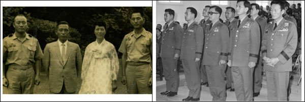 (1967년 청와대 30경비대장 자리를 먼저 차지한 것도 손영길이었고, 전두환은 그의 자리를 물려받곤 했다. 사진 오른쪽은 1973년 ‘윤필용 모반 사건’ 재판 모습. 앞줄 맨 오른쪽이 윤필용 수경사령관, 그 옆이 손영길 참모장이다. )