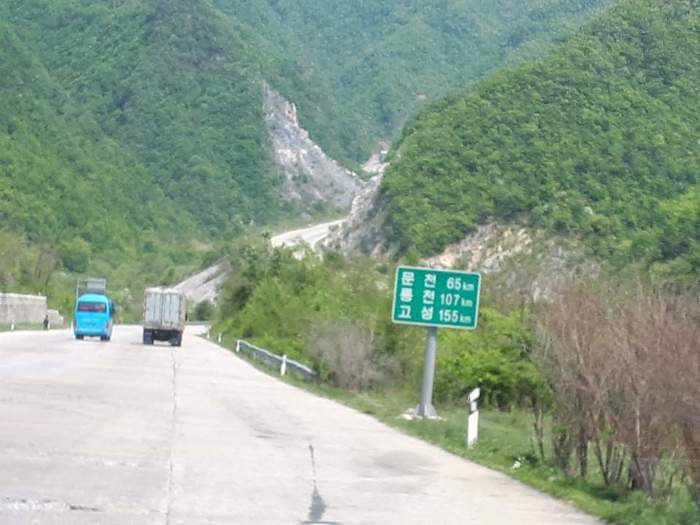 ▲ 원산으로 가는 길...탑차와 버스가 나란히... 이정표는 가야 할 거리를 표시해 준다.