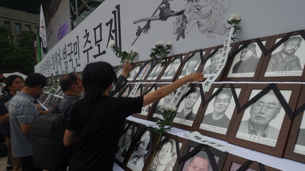 19일 오후 서울시청 앞 서울광장에서 21회 민족민주열사·희생자 범국민추모제가 엄수됐다. [사진-통일뉴스 이승현 기자]