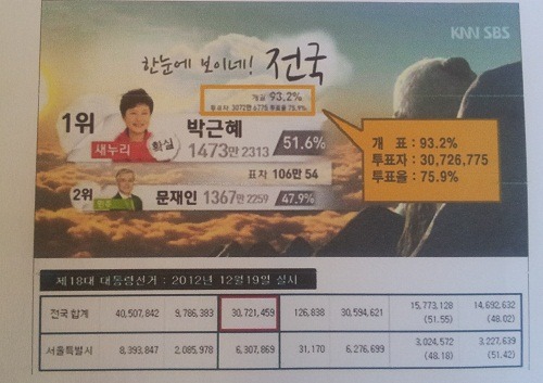 그러면 중앙선관위에서 일정 간격으로 집계결과를 통보받은 방송사는? 통보받은 대로 자막을 만들어 화면으로 송출하면 끝입니다. 그들은 어떤 변경도, 변조도, 수정도 할 수 없는, 말 그대로 주는대로 화면에 내 보내면 되는 일입니다. 이 사실에 대해 이의를 제기할 수 있을까요? 너무나 당연한 일 아닌가요?