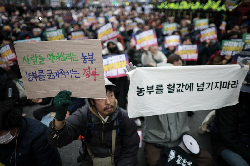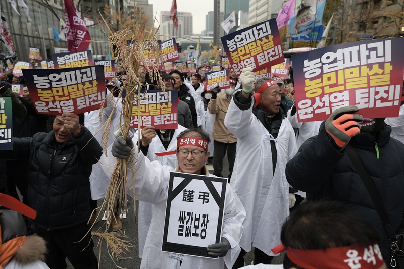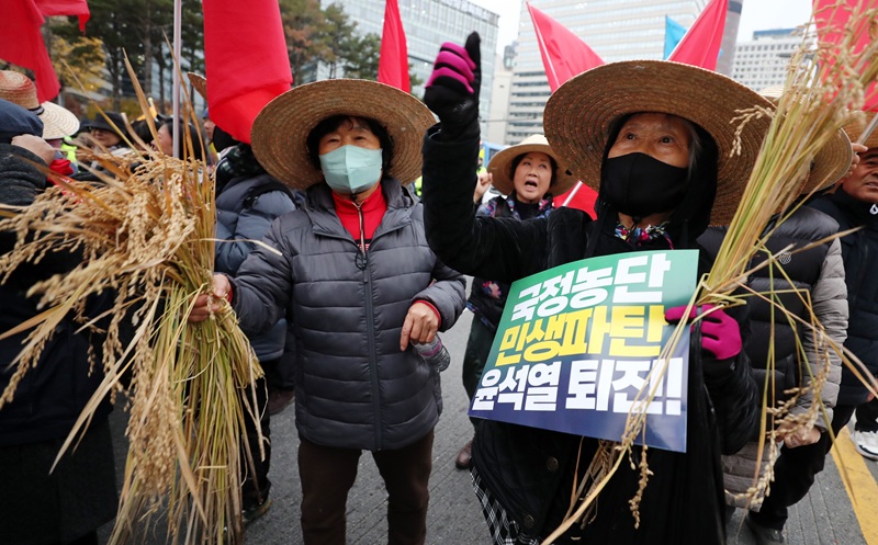 민주노총 양경수 위원장은 “취임하지도 않은 미국 대통령이랑 골프치겠다고 연습하는 그 정성의 반의반만이라도 농민에게 쏟았으면 우리가 오늘 이렇게 아스팔트 농사를 짓지 않았을 것이다. 무슨 짓을 해도 감싸주고 덮어주는 아내를 사랑하는 그 마음의 반의반만이라도 노동자 서민을 생각했다면 이 나라가 이 꼴이 되진 않았을 것”이라며 “노동자들은 전태일 열사 정신으로, 윤석열 정권에 희생된 양회동 열사의 뜻을 받들기 위해 윤석열 정권 퇴진 투쟁에 나서겠다. 농민들은 전봉준 장군 정신으로, 백남기 농민의 뜻을 잇기 위해 윤석열 정권 퇴진 투쟁에 나서자. 12월 7일 다시 한번 민중의 항쟁을 만들어 내자”고 호소했다.