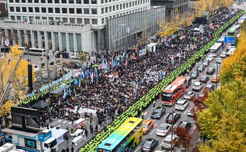 1차 퇴진 총궐기를 열었던 전국민주노동조합총연맹(민주노총)도 이날 농민들과 함께 정권 퇴진 목소리를 높였다.