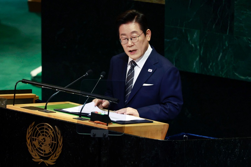 이재명 대통령이 23일(현지 시간) 미국 뉴욕 유엔 본부에서 열린 제80차 유엔 총회에서 기조연설을 하고 있다. 2025.09.24. ⓒ뉴시스