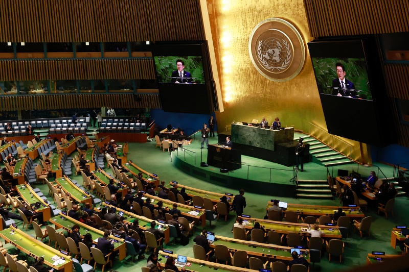그러면서 "어려운 시기일수록 유엔의 기본 정신으로 돌아가야 한다"며 "더 협력하고, 더 신뢰하고, 더 굳게 손잡아야 한다. 지속가능한 미래를 향한 다자주의적 협력의 길에 대한민국이 앞장서겠다"고 강조했다.