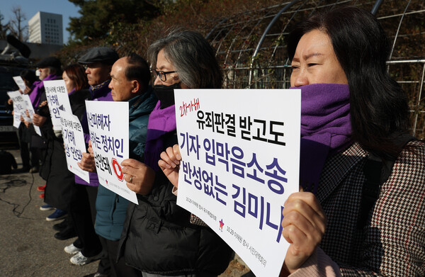 또 "김미나 시의원은 형사재판에서 '잘못을 뉘우치고 있다'는 받아들이기 어려운 이유로 선고유예를 받았다. 손해배상 소송 결과 또한 그동안 유가족이 겪은 고통에 비하면 너무도 미약한 처분을 받았다. 이는 2차 가해를 용인하는 것과 다름없다"며 "더욱이 김 의원은 민사소송에서 패소하자마자 언론을 상대로 고액의 소송을 제기했다. 참사 피해자의 권리를 훼손하는 또 다른 형태의 2차 가해다. 정치인의 2차 가해와 혐오 표현에 대해 법적 책임을 무겁게 물음으로써 사회에 경종을 울려야 한다"고 강조했다.