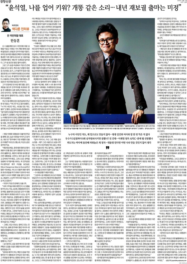 경향신문 인터뷰 나선 한동훈 “윤석열이 날 업어 키워? 개똥 같은 소리”