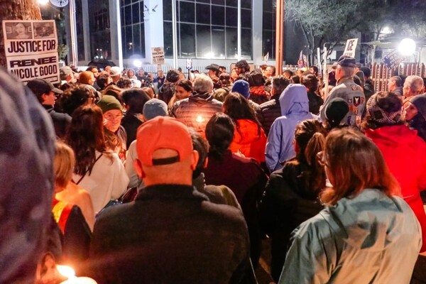 직후 차량은 나아가더니 곧 다른 차량을 들이박고 멈춘다. 차량 옆에서 비명을 지르던 다른 여성이 연기를 내뿜는 굿의 차량 쪽으로 달려가지만, 요원들은 달려가 그녀를 구할 생각은 하지 않고 뒤돌아 자신들의 차량으로 걸어간다. 총격을 가한 ICE 요원 조나단 로스는 권총을 집어넣으며 느릿느릿 걸어간다.