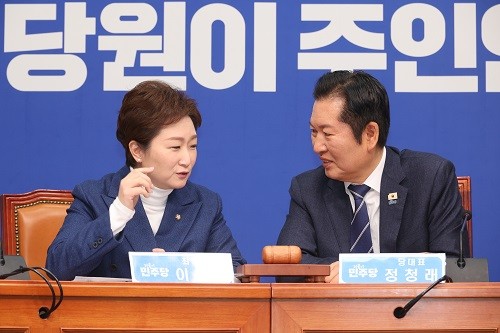 정 대표는 11일 국회에서 열린 최고위원회의에서 “천신만고 끝에 출범한 이재명 정부의 성공만을 생각하고, 앞으로 지방선거 승리에 도움이 되는 일만 하도록 하자”며 “더 이상 합당 논란으로 우리의 힘을 소비할 수 없다”고 밝혔다.