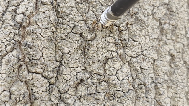 ▲ 오동나무에 생장추를 넣자 수액이 줄줄 흘러나오고 있다. ⓒ 최병성
