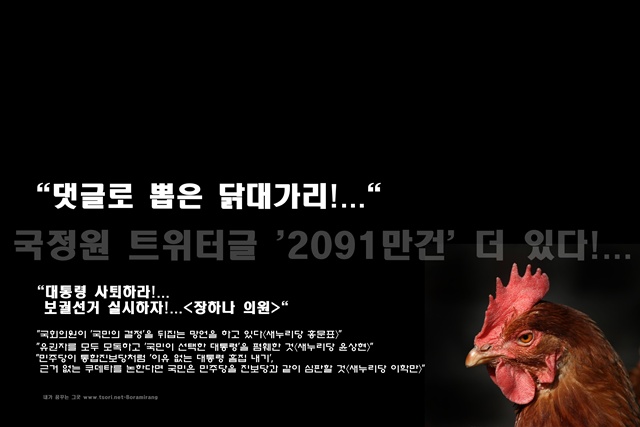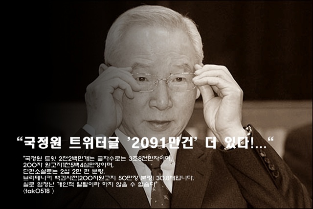 보통사람들이 맨정신에 이런 말을 들으면 어떤 반응을 하게 될까. 그냥 지어낸 말이나 거짓말이라고 할까. 그런데 사태가 조금 더 심각해졌다. 국정원발 트위터글이 '2091만건'이나 더 있다고 [단독] 보도한 곳이 <한겨레>라는 언론사다. 허위사실이나 추측 보도를 한 게 아니라 팩트 그 자체.