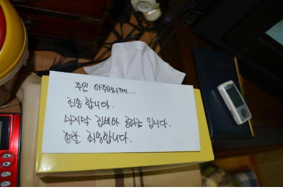 <그림 1> 70만원 든 봉투 생활고를 겪다 자살한 것으로 추정되는 박모씨와 두 딸이 집주인에게 남긴 메모와 70만원이 든 봉투. (자료 : 서울지방경찰청)