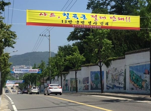 ▲경북 칠곡 거리마다 걸려 있는 사드 배치 반대 현수막 ⓒ미디어몽구