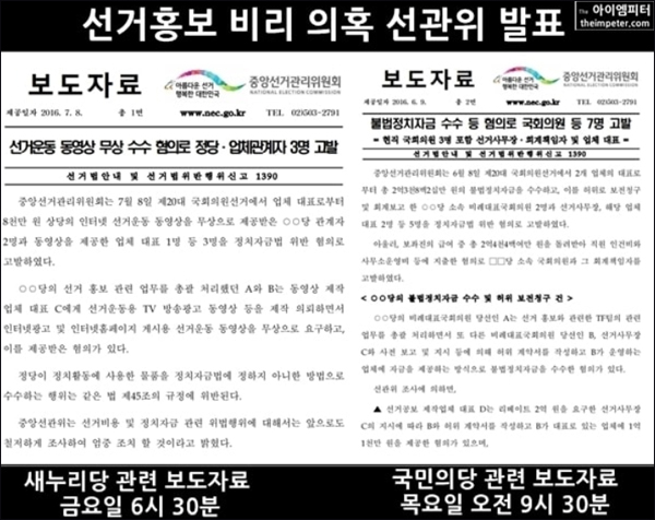 ‘선관위 보도자료 배포, 새누리당 금요일 저녁 6시 30분, 국민의당 목요일 오전 9시 30분’