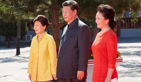| ▲지난 2015년 9월 중국 베이징 자금성에서 열린 `항일전쟁 및 세계 반파시스트 전쟁 승리 70주년 기념행사에 참석해 기념 촬영을 하고 있는 박근혜 대통령과 시진핑 국가주석 내외. ⓒ청와대 |