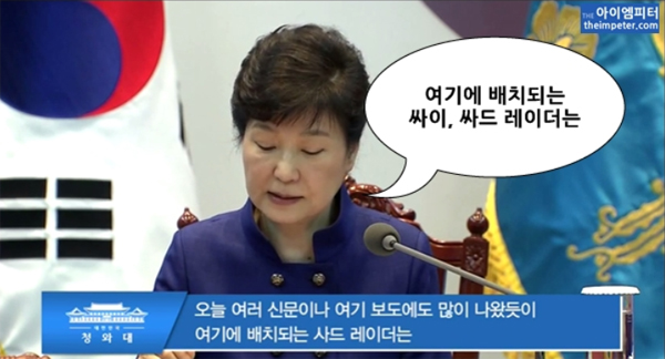 박근혜 대통령은 논란이 되고 있는 사드 전자파 논란에 대해 “지상 약 700m 위로 전자파가 지나가게 됩니다. 따라서 그 아래 지역은 전혀 우려할 필요가 없는 오히려 우려한다는 것이 이상할 정도로, 우려할 필요가 없는 안전한 지역”이라며 ‘우려’라는 단어를 세 번이나 반복했습니다.