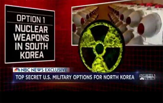 바다 위의 공군기지라는 칼빈슨 항모전단이 한반도를 향하고 있다고 한다. 한미 연합군은 어제(11일)부터 21일까지 경북 포항 일대에서 유사시 전쟁물자의 후방 보급을 위한 대규모 군수지원훈련을 시작한다. 도널드 트럼프 미국 행정부가 북핵 문제를 해결하기 위한 이른바 ‘대북 옵션’으로 미군 핵무기 한국 재배치와 북한 지도자 김정은 제거 작전(참수 작전)을 검토하고 있다고 미 NBC 방송이 7일 단독 보도했다.