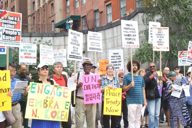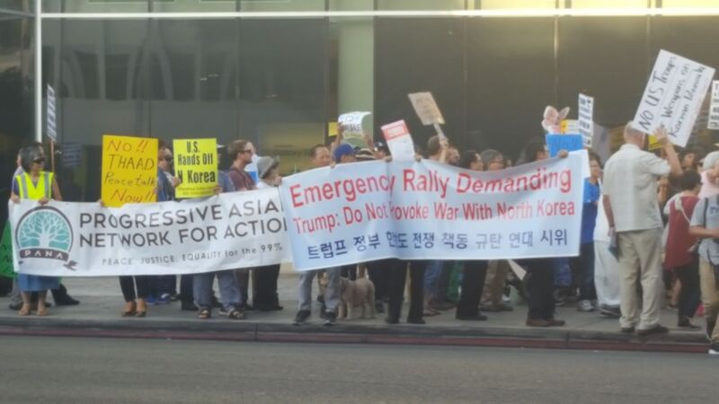 어제(월,8/14) 뉴욕(UN본부앞@12pm), 워싱턴DC(백악관앞@12pm), 로스앤젤레스(코리아타운@6pm)에서 재미동포 진보단체들과 미국인 평화운동단체들이 연대하여 동시 연속으로 <트럼프 정부 북침 전쟁 책동 규탄 긴급 연대시위(Emergency Rally Demanding Trump: Do Not Provoke War with North Korea)>를 ‘트럼프 정부의 북침전쟁 책동을 규탄하는 재미동포와 미국인 평화운동단체들 및 개인들’ (Korean American and U.S.-based Peace Activist Organizations and Individuals Calling on the Trump Administration to Stop U.S. War Provocations Aimed at North Korea)이라는 이름(주최)으로 개최하였습니다.