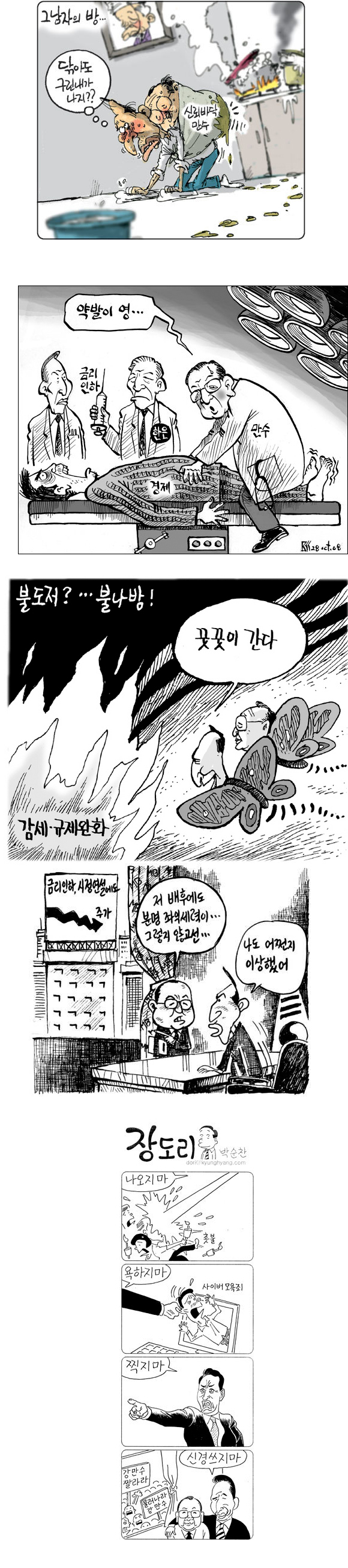 강만수경제팀에 대한 패러디와 만평이 끊이질 않고 있습니다. 유쾌한 해악에 담긴 아픈 사연에 웃음도 이내 사라지곤 합니다.