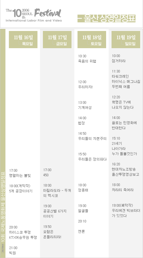 노동영화제시간표(서울,울산,광주)