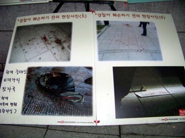 △ 당시 태러사건때 경찰의 늦장대응 및 현장보존 훼손(테러현장을 서둘러 치우려함) 등의 직무유기로 인해 촛불시민 스스로 현장을 보존중에 있다.