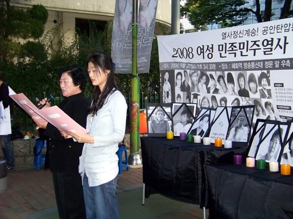 △ 한편 전국여성연대, 한국정신대문제대책협의회 주최로 '2008 여성 민족민주열사, 희생자 추모제'가 이날 오후 3시 40분 대학로 방통대 앞에서 개최했다.