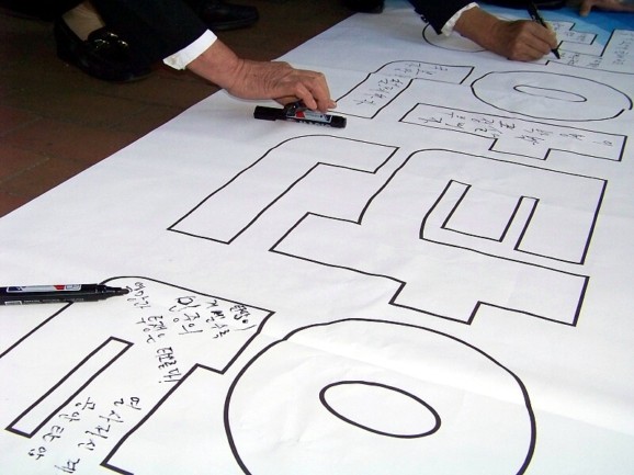 △ '2008 여성 민족민주열사, 희생자 추모제'에서 참가자들이 결의다짐 글쓰기를 하고 있다.