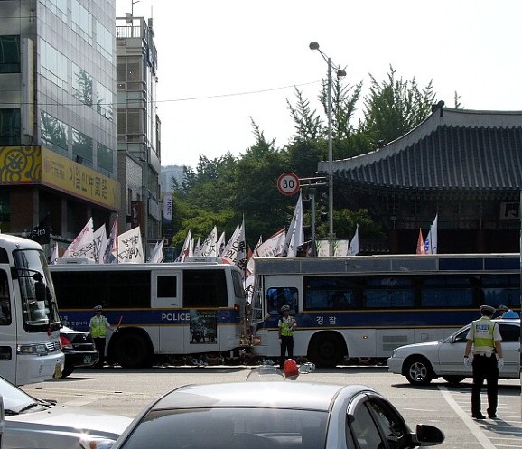 5.30 범국민대회 원천봉쇄로 무산, 대한문 앞서 밤새 촛불 이어