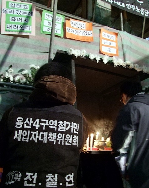 1월 31일 서울에서는 ‘제2차 범국민추모제’에 앞서, 이날 오후 2시부터 전국철거민연합(전철연)과 전국빈민연합 등 20여개 인권.빈민단체들 수천여명은, 서울역 광장에서 1시간30분가량 사전 ‘빈민대회’를 열었습니다. 빈민대회 참가자들은 '추모제 원천 봉쇄 방침 철회, 빈민탄압 중단, 용산철거민 살인만행 이명박 정권 퇴진, 민중생존권 확립'등을 촉구했습니다. 오후 3시40분경 사전집회를 마친 뒤 범국민추모.본대회에 합류하기 위해 거리행진을 시도했으나 경찰의 저지로 무산됐고, 인도를 따라 산발적 행진을 하여 범국민대책위와 합류해 청계광장 옆 광통교에서 추모대회를 이어갔습니다.