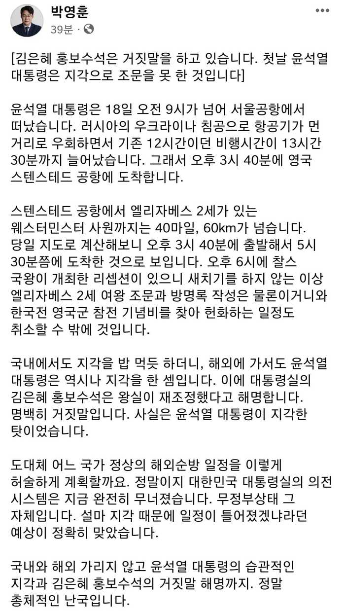 박영훈 "허술하게 계획한 해외순방 일정..대한민국 대통령실의 의전 시스템은 지금 완전히 무너졌다. 총체적 난국" https://amn.kr/42411