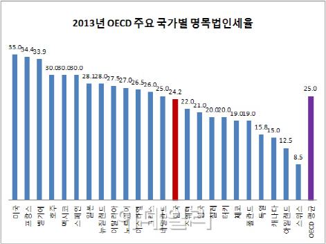 이처럼 새로운 세금을 신설하는 대신 현행 35%로 경제협력개발기구(OECD) 주요 국가들 가운데 가장 높은 수준인 법인세 최고세율을 인하하고 전반적인 법인세 체계를 뜯어 고치겠다는 게 미국 정부의 생각이다.
