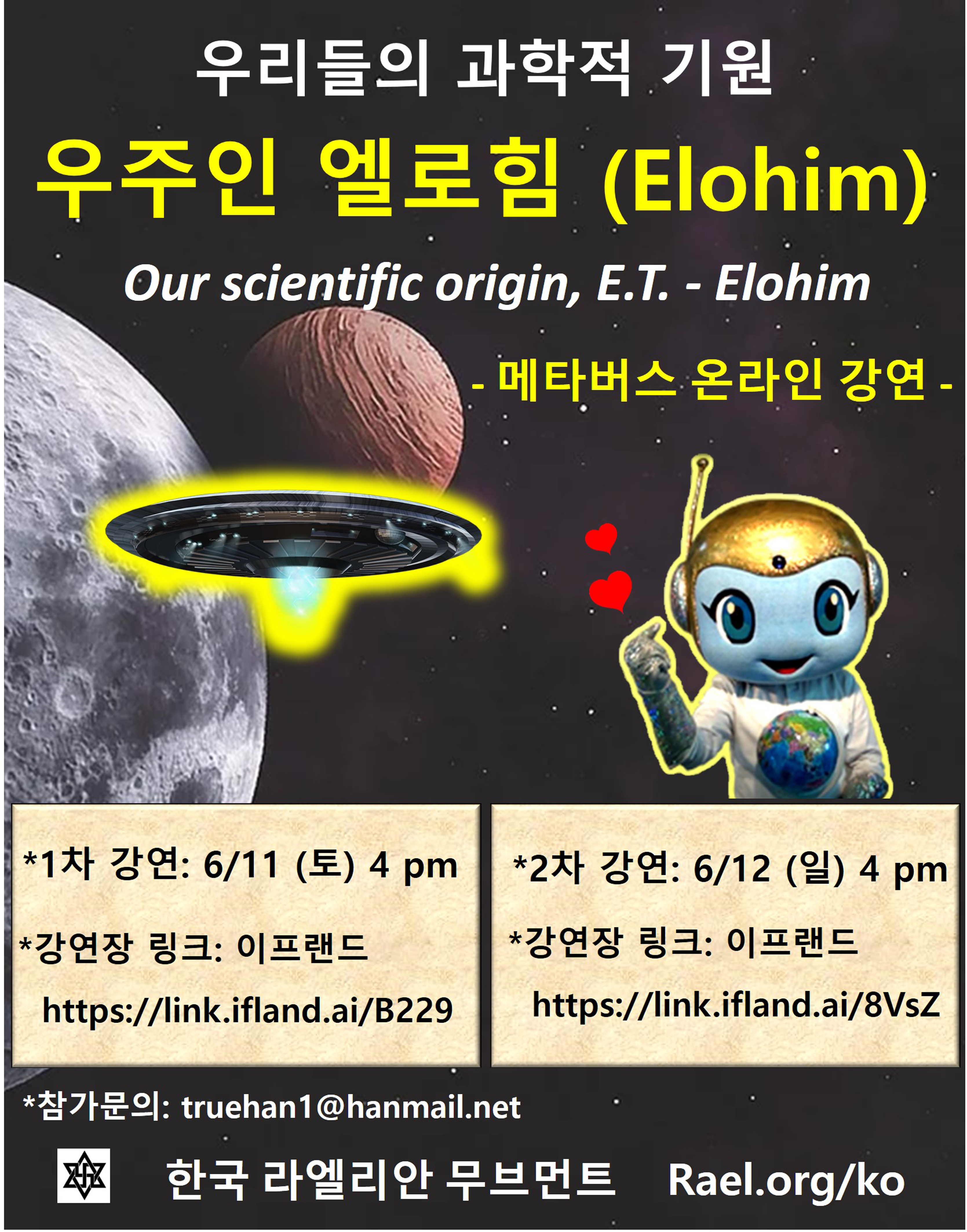 ※기타 참고 영상 : RaelTV 한국 “우리는 외계문명을 맞이할 준비가 돼 있나요?”