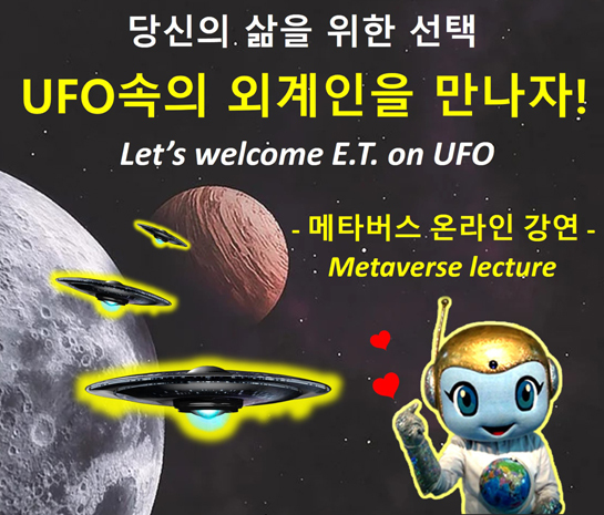 한편 강연회는 ‘메타버스’를 통해 이뤄지며, 참가를 원하는 사람들은 누구나 자신의 휴대폰으로 이프랜드(ifland) 앱을 play 스토어에서 다운받아 설치, 실행한 후 강연장 링크(https://link.ifland.ai/a5BU)를 접속하면 된다. 또는 이프랜드에서 ‘외계인은 당신을 사랑해요!’를 입력, 검색 후 참가할 수도 있다.