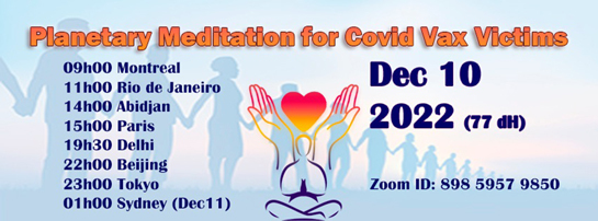 우리 인류의 기원과 직결된 우주인(ET) ‘엘로힘(Elohim : <하늘에서 온 사람들>이란 의미)’의 메시지를 전하는 국제 라엘리안 무브먼트(rael.org / 창시자 라엘)가 코로나19 백신 부작용 피해자들을 위한 전(全) 지구적 명상을 진행한다. [참고 영상 : https://rumble.com/v1y3wic-supporting-victims-of-pseudo-vaccine-side-effectsplanetary-meditationdecemb.html]