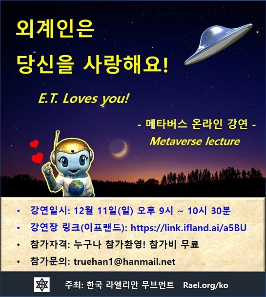 [라엘리안 보도자료] ‘외계인은 당신을 사랑해요’ 메타버스 대중 강연회...12월 11일(일) 오후 9시 진행