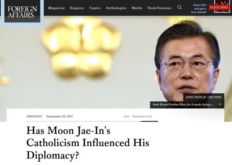 “포린어페어스” 문재인 대통령의 가톨릭 신앙과 평화정책