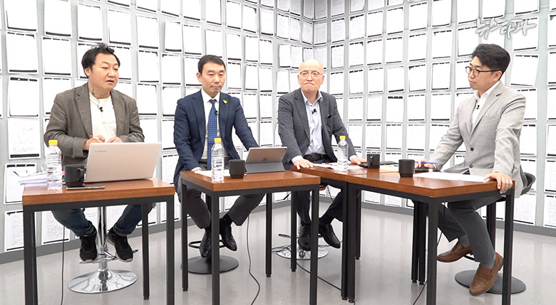 ▲ 왼쪽부터 김경래(뉴스타파 기자), 김용민(변호사, 국회의원 당선인), 강기석(언론인, 뉴스통신진흥회 이사장), 심인보(뉴스타파 기자). 이들이 말한 ‘한명숙 사건의 모든 것’은 방송으로 확인할 수 있다.