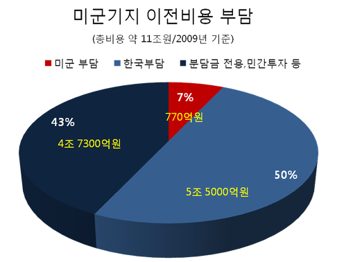 2011년부터 현금 12%와 현물 88% 등 한국 정부의 100% 지원에 의해 미군기지 이전 공사가 진행되고 있다.