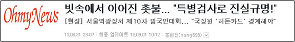 국정원 불법선거, 촛불집회 언론에서 사라졌다