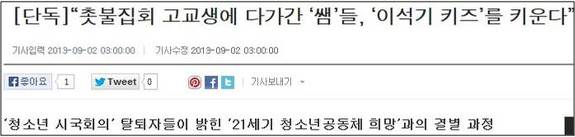 동아일보도 조선과 비슷한 행태다. ‘내란음모 사건’ 관련 기사가 넘쳐난다. 2일자에는 ‘촛불집회 고교생에 다가간 쌤들, 이석기 키즈 키운다’라는 기사가 올라왔다.