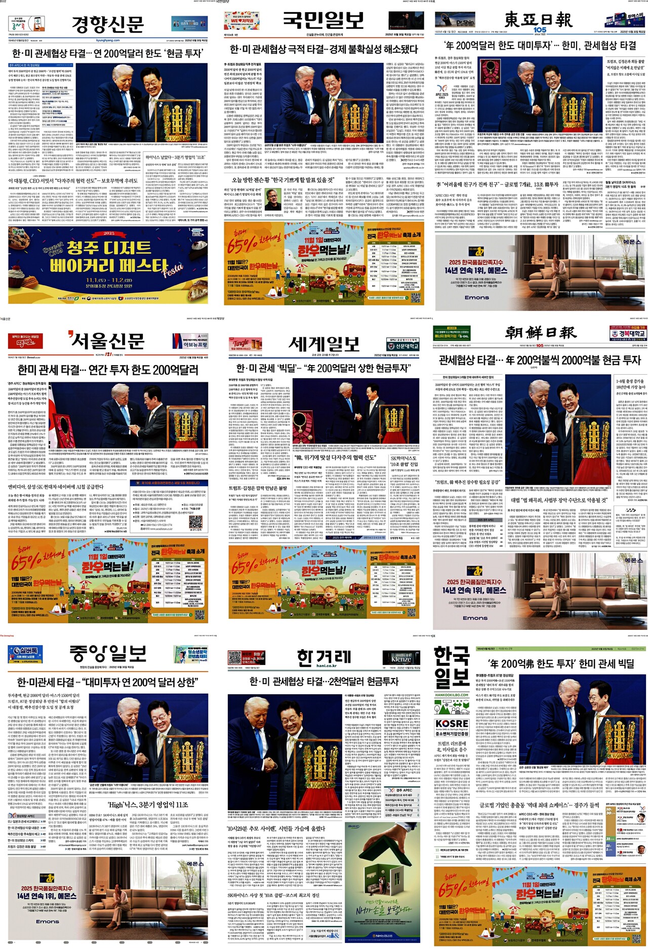 경향신문 <한·미 관세협상 타결… 연 200억달러 한도 ‘현금 투자’>