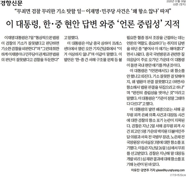 경향신문 : “계엄, 잘못된 수단”…‘윤석열 절연’은 안 해