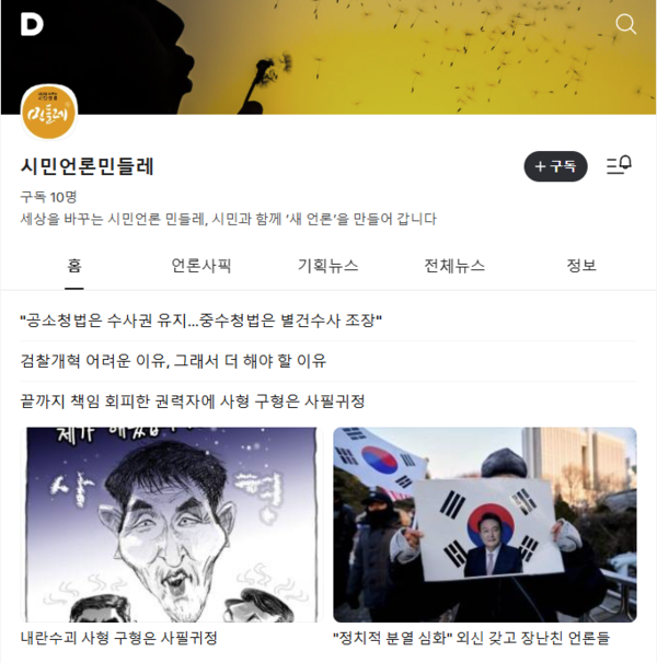 이로써 시민언론 민들레는 언론사 채널 운영을 위한 실무 작업을 거쳐 이날부터 포털 다음에 기사를 전송하고 자체적인 '민들레 편집판'도 운영하게 됐습니다. 지난 2022년 11월 15일 창간한 지 3년 2개월 만입니다. 민들레는 윤석열 정권 3년 내내 네이버와 다음이 공동 운영하던 '뉴스제휴평가위원회'(제평위)가 활동을 전면 중단하면서 양대 포털에 들어갈 수 있는 길이 원천 봉쇄돼 확장성 제고에 어려움을 겪었으나 이제 그중 한 곳에 진출함으로써 참언론의 꽃씨를 더 널리 퍼뜨릴 수 있게 됐습니다.