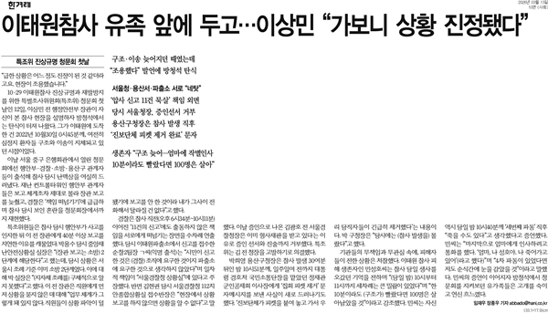 윤석열 불참·이상민 침묵, 경향 “이태원의 진실 그리 두려운가”