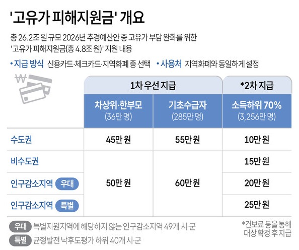 지난해 추경 당시의 '민생회복 소비쿠폰'처럼 신용카드·체크카드·지역화폐 중에서 선택할 수 있도록 했다. 사용처는 지역화폐와 동일하게 설정된다.