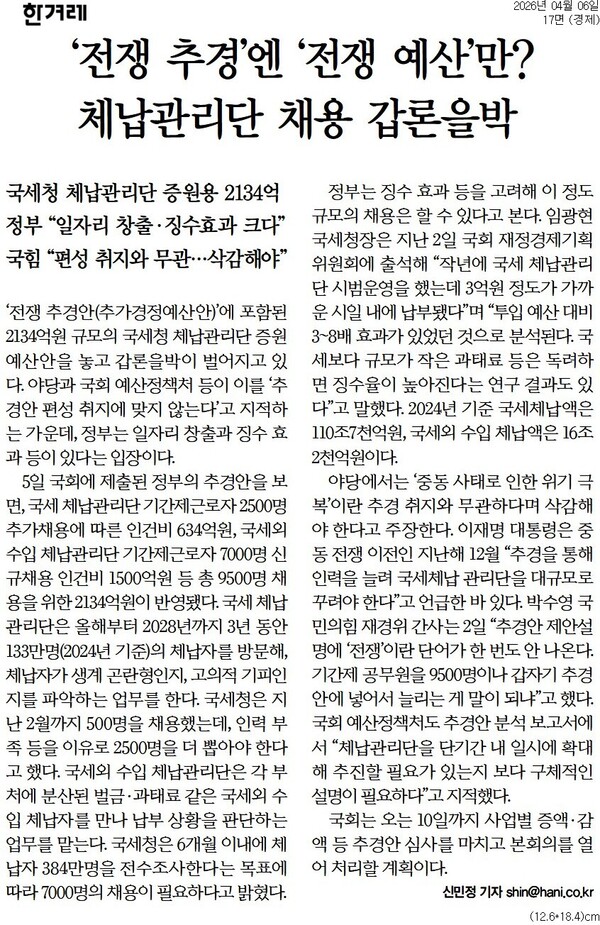 한국일보 <‘전쟁 추경’, 선거용 정쟁 말고 여야정 힘 모아야>