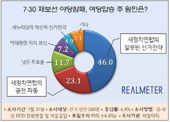 결국 ‘세월호 참사 정권심판론’은 역풍를 맞았다. 결정적 사건은 공천 파동. 광주 민심이 요동치고 수도권 지지층 사이에서 실망감이 확산되는데도 새정치연합 지도부는 이를 간과했다. 공천 파동까지‘정권심판론’으로 덮으려했다. 세월호 정권심판론을 전가의 보도처럼 휘두른 결과가 공천 파동과 만나며 역풍으로 이어진 것이다.