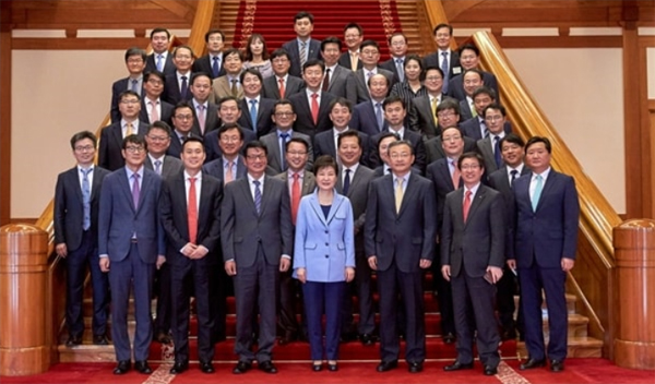 ▲박근혜 대통령이 언론사 편집·보도국장과 오찬간담회가 끝난 뒤 기념촬영을 하고 있다 ⓒ청와대