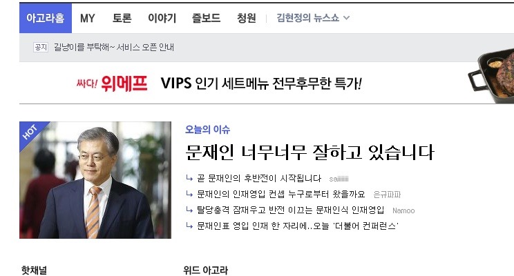 찬양글을 메인에 각각올려주고 자빠졌냐 ?